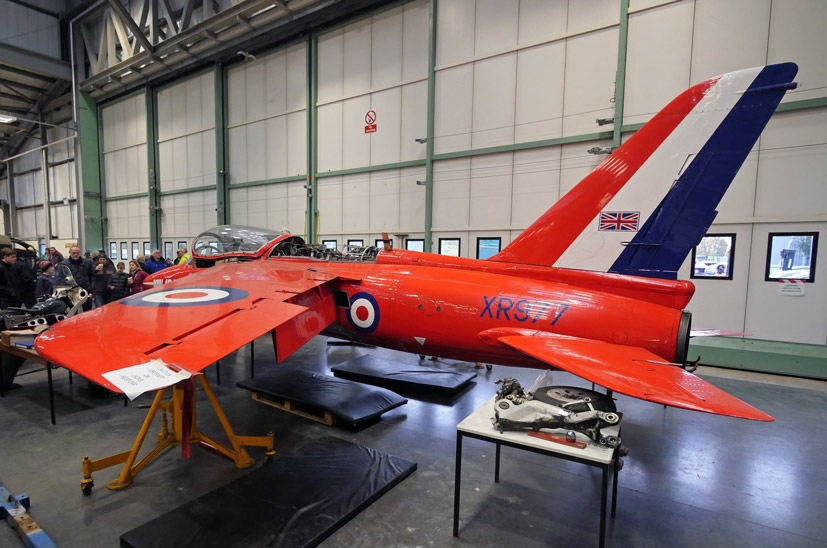 The Gnat has been undergoing a period of maintenance at Cosford in preparation for an exciting new future as a centrepiece attraction of next year’s RAF Centenary commemorations. Taking pride of place in a new ‘Innovation’ display, sponsored by Rolls-Royce, the aircraft is intended to be mounted on an impressive plinth high above visitors at the Hendon site, with these famous flying colours destined to thrill thousands of future visitors. Marking the development of the jet engine and how Rolls-Royce have helped to power the RAF over the past 100 years, this new exhibition is scheduled to be a major attraction in the centenary year of the RAF. We were fortunate to catch the Gnat during our visit to Cosford, as it has now been transported by road to its new home at Hendon.