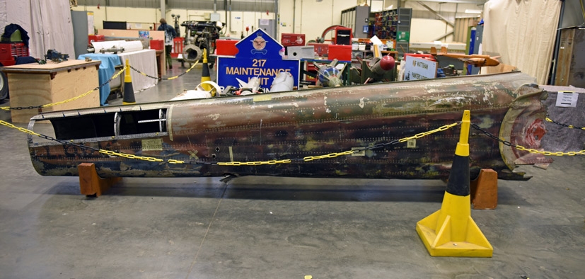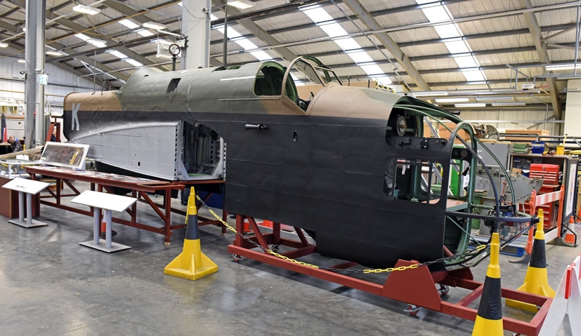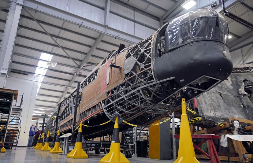 Tragically, three of the aircraft’s crew were killed during this incident, with the other two becoming German prisoners for the duration of the war. The aircraft itself lay undisturbed on the boggy ground for many years, until salvaged and purchased by a Warbird collector, later coming into the hands of the RAF Museum. The wreckage eventually arrived at Cosford in 2003 and after an extensive period of survey and catalogue work, the serious business of restoring this rare aircraft began in earnest. Interestingly, when looking at the original fuselage components, you can clearly see the bullet and shrapnel damage sustained by the aircraft during combat with the Luftwaffe on 4th September 1942. Once complete, this will be a magnificent tribute to the men of Bomber Command and the brave Hampden crews who fought so valiantly during the yearly years of WWII – it will also be one of only two complete examples in existence from a total production run of 1,430 aircraft produced. A massive undertaking, when this project eventually comes to fruition, it will be testament to the vision, hard work and determination of a relatively small number of people, but what they will have achieved will be nothing short of miraculous and a significant component in preserving Britain’s aviation heritage.