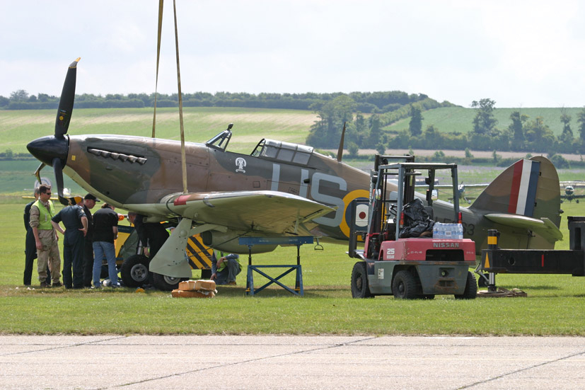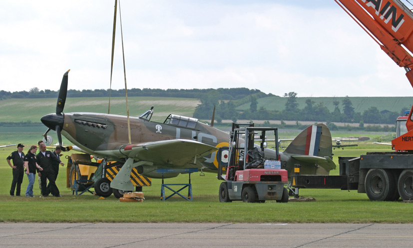 The Hurricane was coaxed back onto its undercarriage using a heavy crane and some flight engineers