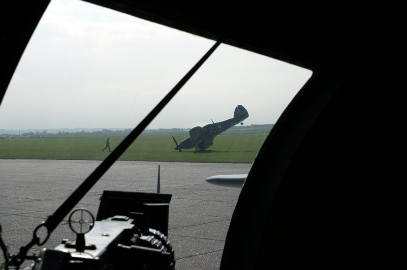 During the morning of the first day of the show, I was fortunate enough to be allowed on board the famous B-17G Flying Fortress ‘Sally B’, courtesy of a friend who was one of the hard-working volunteers manning the aircraft over the weekend. We were sitting in the fuselage of the aircraft, near the waist gunners position, discussing how thin the skin of the aircraft was and trying to imagine how frightening it must have been for USAAF crews taking these mighty bombers into combat over occupied Europe. From my location sitting opposite the starboard waist gun position, I could see through the Perspex on to the airfield and noticed that the BBMF Hurricane which had just landed appeared to have a problem and was heading straight for us. Although it certainly seemed as if it was quite a close call at the time, in reality it was probably quite some distance from us and even though the Hurricane appeared to be on a collision course with the B-17, the heroic actions of the pilot of LF363 ensured the unfortunate incident did not become any more serious.