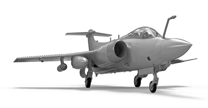 A computer generated side view showing the distinctive shape of the new Airfix Buccaneer kit