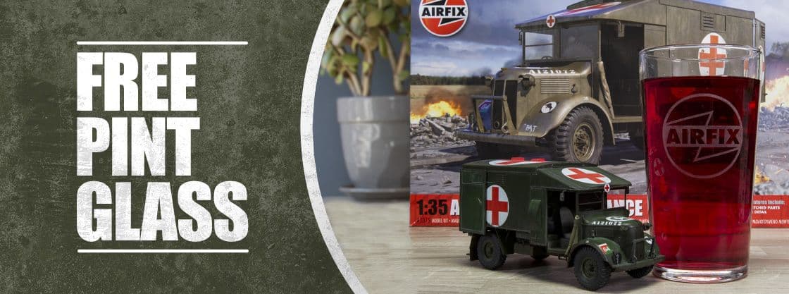 It's a match made for the workbench, as a special limited-time offering for the release of the newly tooled K2-Y Ambulance, Airfix has added a product-exclusive pint glass to every order!