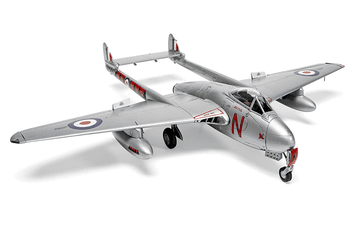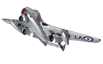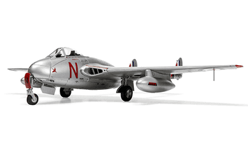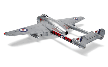The Vampire F.Mk.I entered Royal Air Force service in March 1946, to be followed by the revised and more capable F.3 just two years later. The Vampire F.3 was basically a longer range version of its predecessor, featuring increased internal fuel capacity and the ability to carry two external fuel tanks. This latest variant also differed visually, in that it incorporated taller and more rounded vertical stabilisers, a lowered horizontal stabiliser and distinctive 'acorn' fairings at the base of each vertical stabiliser. Although this was still relatively new technology, de Havilland cleverly designed the aircraft to be simple to maintain and operate, earning the aircraft an enviable reputation for reliability amongst air and ground crews alike and allowing more pilots to safely make the transition to jet powered flight.