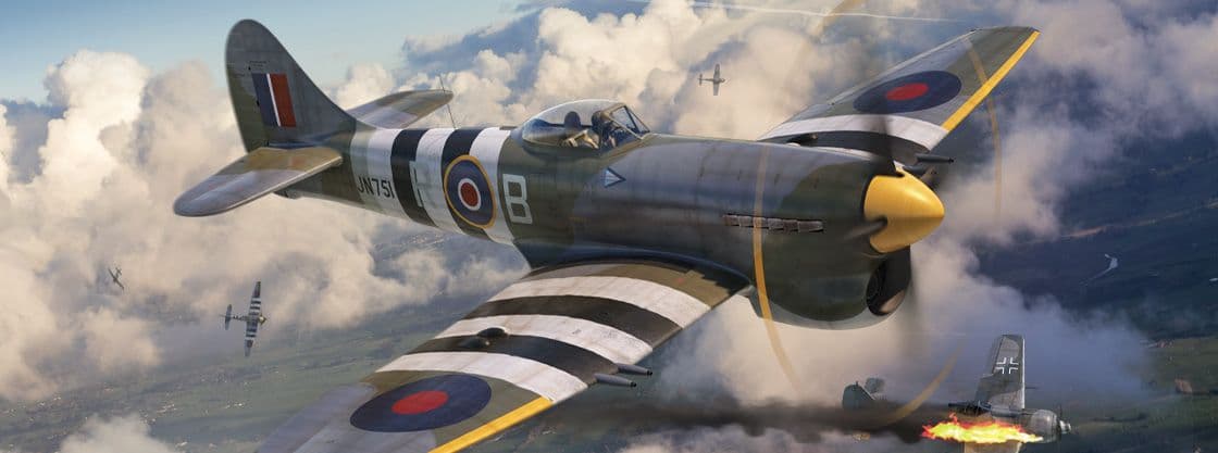 The original fighter replacement for the Hawker Hurricane was the Typhoon, an aircraft which attempted to combine the most powerful piston engine available at the time with a small, yet strong and heavily armed airframe. Although intended as an interceptor fighter, it became apparent during development that the new aircraft would not be able to fulfil this role, as the thickness of the wing was not conducive to high performance at high altitude. In fact, the Typhoon would endure quite a troubled development and service introduction, to the point where cancellation of the programme was seriously considered at one time. Nevertheless, the Typhoon would eventually go on to find its aviation niche as a hard-hitting ground attack aircraft and one which would come into its own during the time of the Allied invasion of Normandy.