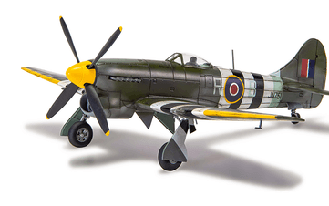 At first glance, the Typhoon and Tempest do share many similarities, however, if you know where to look, it is not difficult to tell them apart. Without doubt, the wing is the most obvious distinguishing feature, as not only is this thinner than the one used on the Typhoon, it is also a completely different shape. With a straighter leading edge and more elliptical trailing edge, the Tempest'™s wing was designed for speed, even though it could still be used effectively in a ground attack role. Other Tempest design differences include a slightly longer nose and a tail section which appears to be much larger, with a more generous vertical stabiliser which features a pronounced dorsal fillet. During the prototype aircraft'™s maiden flight, it posted an impressive top speed of 477 mph in level flight, impressing both the design team and the watching Air Ministry.