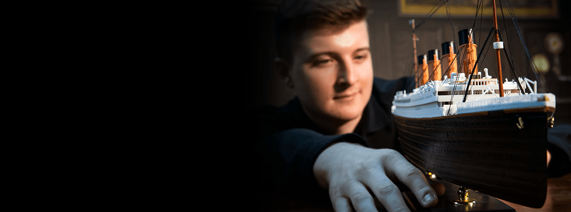 RMS Titanic was an Olympic-class passenger liner owned by the White Star Lineand built at the Harland and Wolff shipyard in Belfast, NI. On the night of 14 April 1912, during her maiden voyage, Titanic hit an iceberg, and sank two hours and forty minutes later, early on 15 April 1912, with the loss of 1,514 lives.