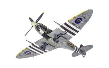 The first 100 Spitfire Mk.IX fighters were actually Mk.Vc airframes adapted to take the new Merlin 61 two stage, two speed supercharged engine, with this combination producing a thoroughbred fighting aeroplane, one which was more than capable of challenging the FW190 and the latest 'F' variant of the Messerschmitt Bf 109. In fact, the new Spitfire was considered so successful that this would become the second most heavily produced variant in the entire production run and if including the aircraft powered by the licence built Packard Merlin 266 (Spitfire Mk.XVI) even eclipsed the Mk.V in production numbers. With further powerplant refinement taking place throughout the production life of this variant, the first Mk.IX Spitfires started to join RAF Squadrons from July 1942, with this famous mark of Spitfire going on to see service past D-Day and into the post war era. The last major Merlin engine powered variant of the Spitfire, this 'emergency stop-gap fighter' actually became something of an aviation classic.